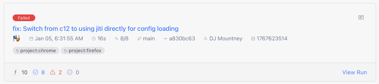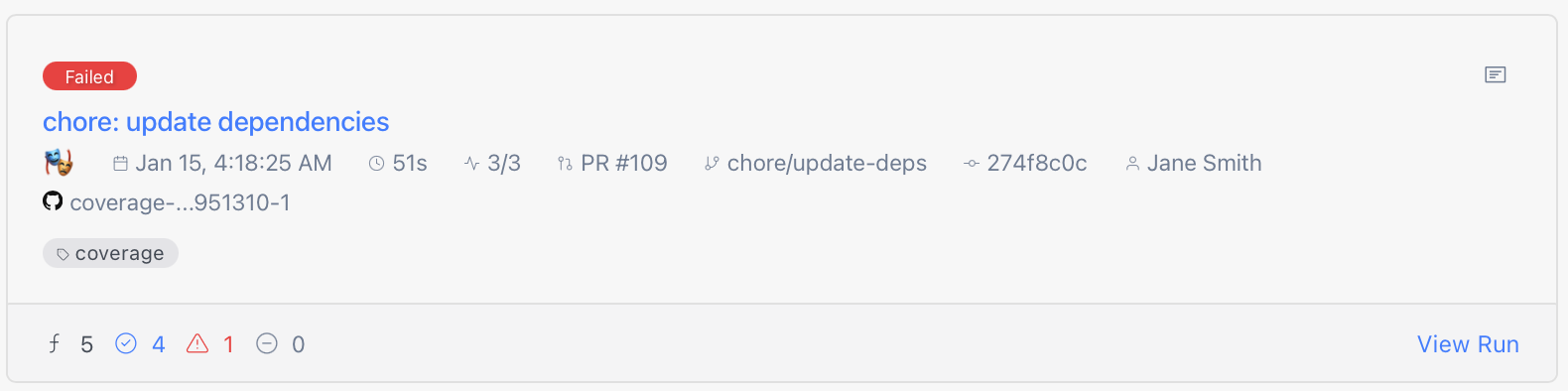 * Run - is a high-level abstraction that represents a CI execution of a test suite